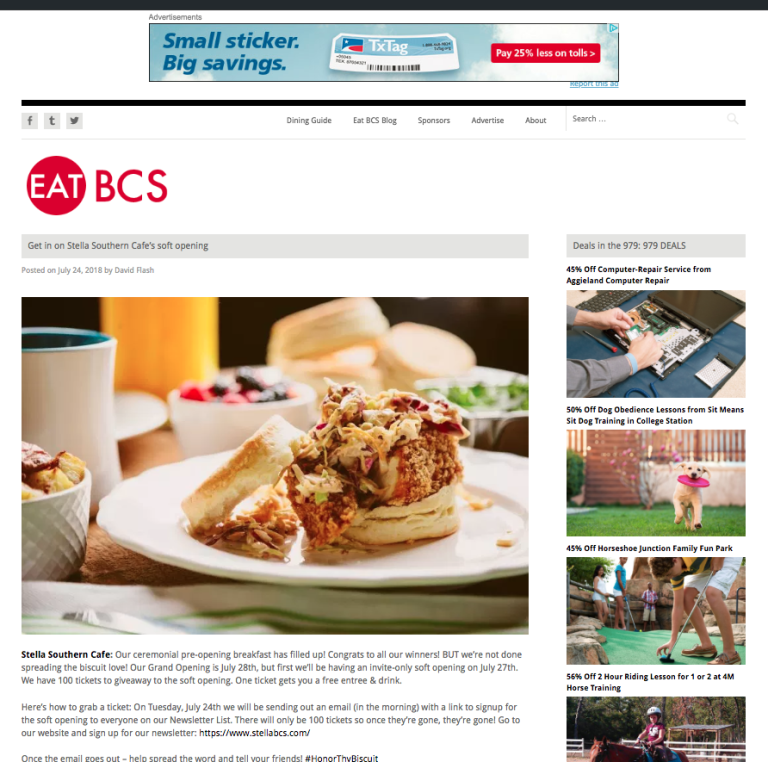 EatBCS.com covered the Bryan-College Station cuisine scene from 2012 through 2018. In 2017, the site that catered to the Bryan – College Station market service area (approx. 200,000 population) served 307,600 page views to 177,456 visitors. As of September 9, 2018, the site had already bested its 2017 stats with 313,265 year-to-date views and 160,165 visitors. Since the site’s move to WordPress.com in 2015, stats show 773,402 views and 441,447 visitors.
