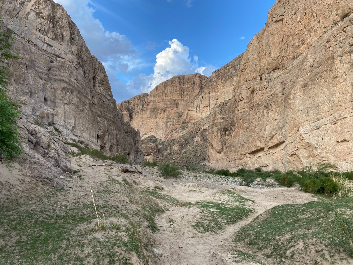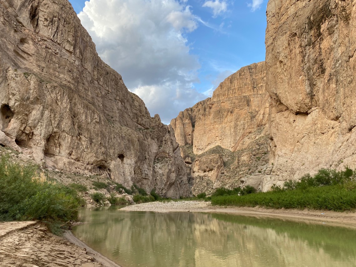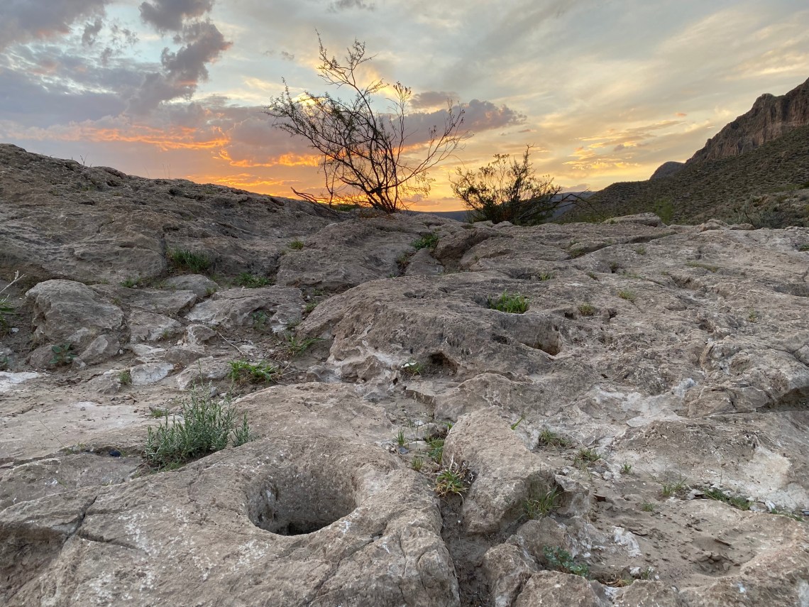 The Boquillas Canyon Trail is a great way to enjoy one of the three major canyons located in Big Bend National Park. A walk along the Rio Grande leads to the entrance of a magnificent limestone gorge that splits the Sierra del Carmen Mountains. Along the way, look for ancient fossils that existed when this area was under an ocean, and pre-historic grinding holes that indigenous inhabitants used in food production. – National Park Service