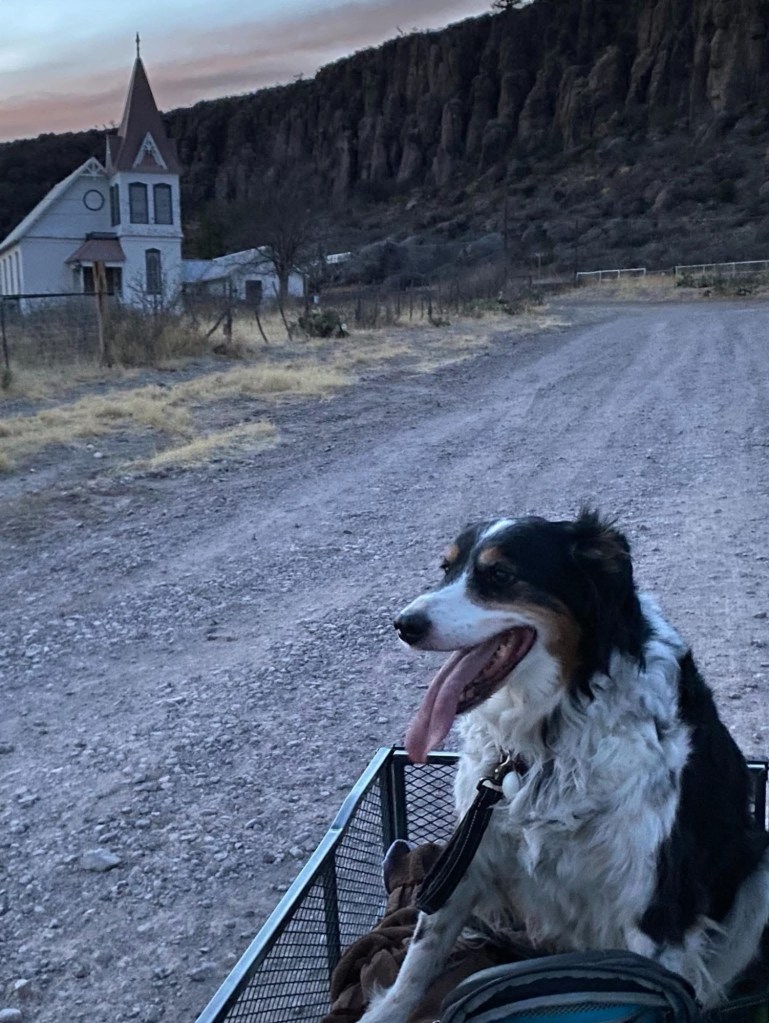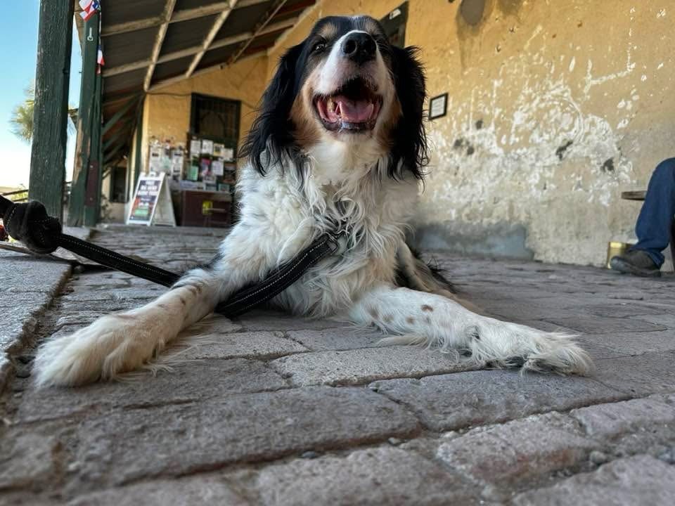 In 2021, Nixon and I moved out west to Fort Davis, where we lived for a year on the Point of Rocks Ranch. He loved it there — barking at llamas, cows, and chickens, and running free across the desert landscape. We’d spend quiet afternoons by the riverbanks, where he’d watch horses cross from the Mexico side to drink. Around Marfa, people were always kind to him. And at Los Ojitos in Big Bend Ranch State Park, when he was still young, he’d run across the open land with pure joy — the way dogs are meant to live.